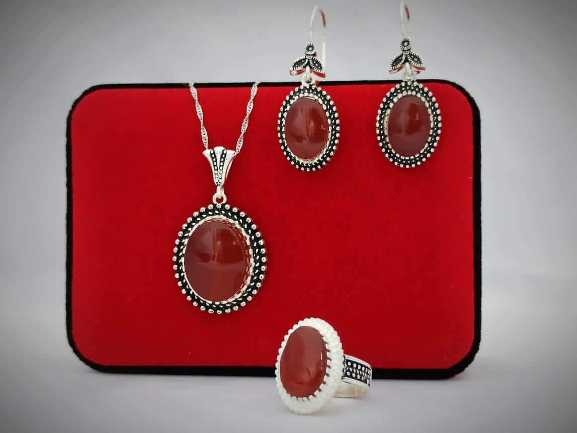 مكونات ومميزات طقم فضة عقيق أحمر من النخبة: